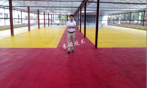 變廢為寶,采用賽諾公司的海綿城市技術建造的透水地坪。圖為王福州董事長在施工現場