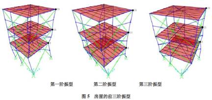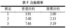 計算隔振結構房屋的自振頻率和振型,如表5。