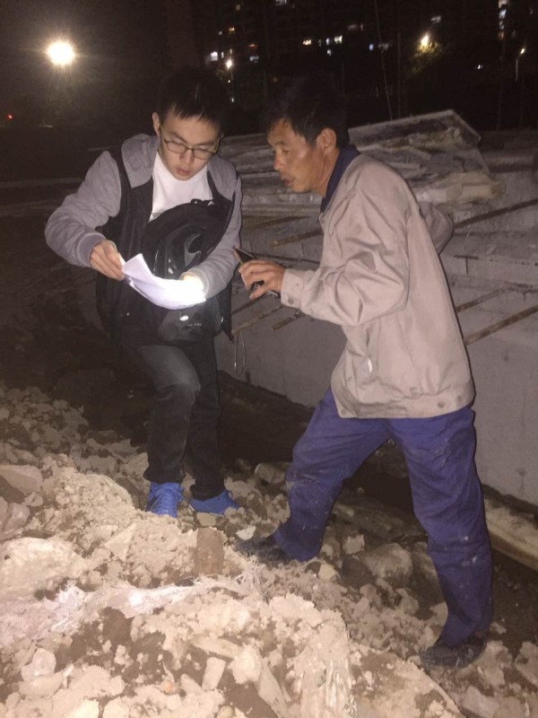 東北大學研究生深夜在賽諾冗余防水工地學習