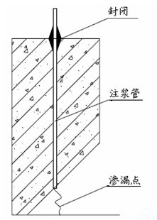 5)待注漿管管周封閉材料穩定后,用水溶性聚氨脂對滲漏點進行壓漿。