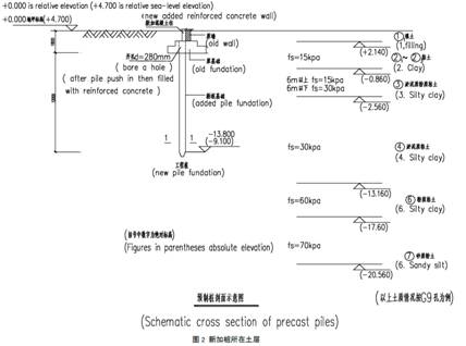 (1) 在上海地區(qū)的大批校安抗震加固工程中,有些校舍抗震能力極差,上部采用鋼筋混凝土板墻抗震加固后,傳遞到基礎(chǔ)的荷載增加量已超規(guī)范要求的“不超過原基礎(chǔ)承受荷載的10%”,因此對(duì)設(shè)計(jì)原基礎(chǔ)以減少沉降而加固的錨桿靜壓短樁。
