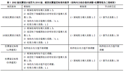 根據(jù)鑒定標(biāo)準(zhǔn)第1.0.5條[3],C類建筑應(yīng)按現(xiàn)行國家標(biāo)準(zhǔn)《建筑抗震設(shè)計規(guī)范》(GB50011)的要求進(jìn)行地震作用計算和截面抗震驗算。由于該廠房進(jìn)行結(jié)構(gòu)設(shè)計時采用的規(guī)范版本為2002版規(guī)范,在混凝土結(jié)構(gòu)的抗震設(shè)計上與10版規(guī)范有較大差異(見表1)。