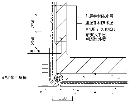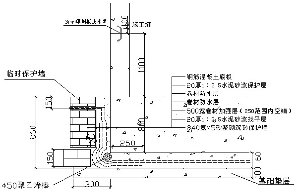 (5)基礎底板外側永久性保護墻上卷材防水層,及時抹水泥砂漿保護層。