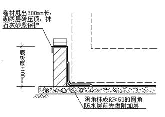 c.施工縫附加層。地下室水平和縱向施工縫,均需做加強(qiáng)處理,處理方法是,在防水層施工前,鋪貼500mm寬附加層。