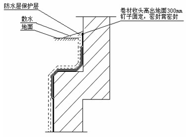 1)地下室外墻采用滿(mǎn)粘法。地下室外墻結(jié)構(gòu)完工,具備防水施工條件后,外墻節(jié)點(diǎn)處理完,即可進(jìn)行防水層的鋪貼。