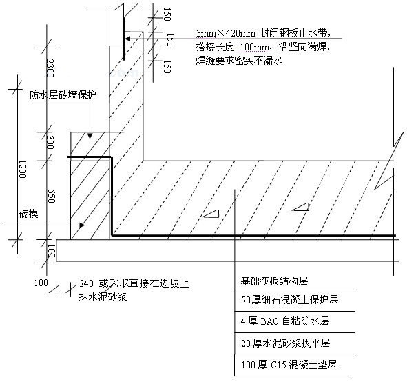 圖4 主樓筏基側面防水層做法
