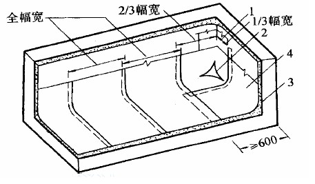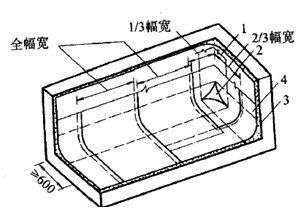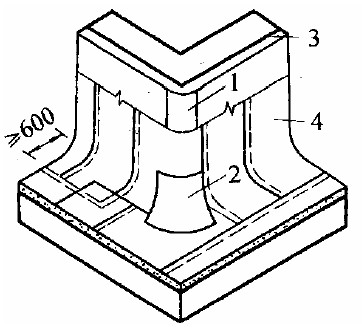 1—轉折處卷材加固層;2—角部加固層;3—找平層;4—卷材