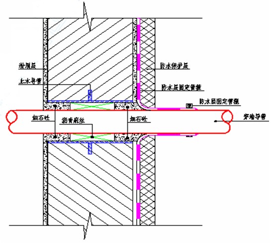 1)穿墻螺桿、拉片、套管等,均在其中間部位加焊止水環,止水環必須滿焊,環高為30mm。