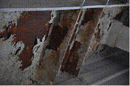 圖3 拆除施工對梁的損傷 圖4 構件表面銹蝕情況