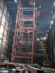 2.關于鑒定中發現爐前平臺嚴重積灰的問題,經現場調查及分析,是由于原設備泄露,而且未及時清理造成。更換鍋爐設備及增加通風后,爐前鋼平臺積灰現象將得以改善,故可不考慮積灰荷載。