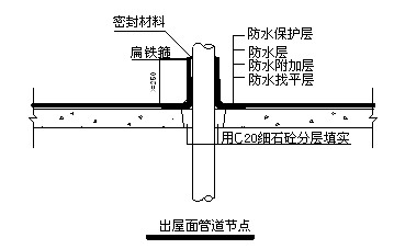 管道根部直徑500mm范圍內,找平層應抹出高度不小于30mm圓臺,或在保護層上做圓臺,周邊留20mm×20mm凹槽,用密膏封膏封嚴。