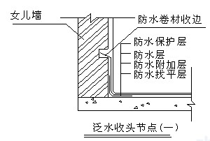 2)找平層與突出屋面的物體(如女兒墻、出入口等)等相連的陰角,應抹成光滑的小圓角;找平層與檐口、排水溝等相連的轉角,應抹成光滑一致的圓弧形。陰陽角一般應做成R=30~50mm的圓孤(陽角可為R=30mm)。