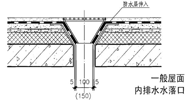 ⑦水落口。若采用金屬雨水口、先用鋼絲刷刷掉銹斑,均勻刷防銹漆一道。雨水口(金屬雨水口或UPVC雨水口)安裝前,找好標高,彈出雨水斗的中心線,用水泥砂漿臥穩,用細石混凝土嵌固,填塞密實。橫式雨水口內下口與防水層附加層用密封材料嵌嚴,防水面層伸入落水口200mm粘實,與墻面防水層交圈,直式落水周圍直徑500mm范圍內坡度不小于5%。
