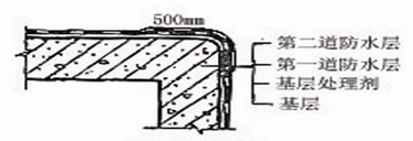 d.涂料防水層的施工縫(甩茬)應注意保護,搭接縫寬度應大于100mm,接涂前應將其甩茬表面處理干凈。