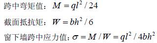 將門窗間墻考慮為懸臂構(gòu)件,溫差作用下的彎拉應(yīng)力計(jì)算如下: