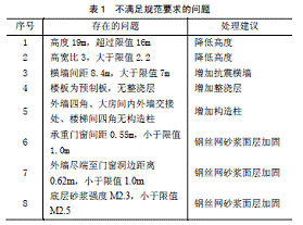(5)由《建筑抗震鑒定標(biāo)準(zhǔn)》(GB50023-2009)知,教學(xué)樓房屋抗震構(gòu)造措施中有多項(xiàng)規(guī)定明顯不符合現(xiàn)行規(guī)范要求,房屋的綜合抗震能力不滿足抗震鑒定要求。具體問題詳見表1。