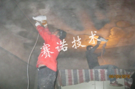 4、12小時后,如出現局部漏點,可用YY16閃凝漿料預處理,漏水嚴重的地方用YY-17特種萊卡樹脂進行處理;